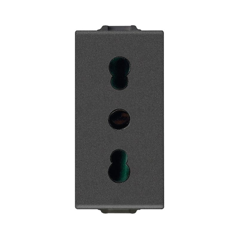 Контакт италиански стандарт 2P+E 16A 1 модул Карбон мат Neve Up. С максимална безопасност SICURY защита - патентована технология на Vimar за автоматична механична защита на контактите. Осигурява безопасност чрез синхронен отварящ механизъм, който позволява включване само при правилно поставен щепсел. Предотвратява достъп до тоководещи части и повишава електробезопасността. Отличен избор за дом, офис, хотел, детски заведения и обществени пространства. Комбинира сигурност, функционалност и визуална елегантност.