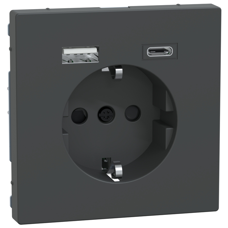 Контакт шуко 16A с 2x USB A+C 3A 15W с лицев панел цвят Антрацит System Design - Schneider Electric Merten System Design MEG2367-6034