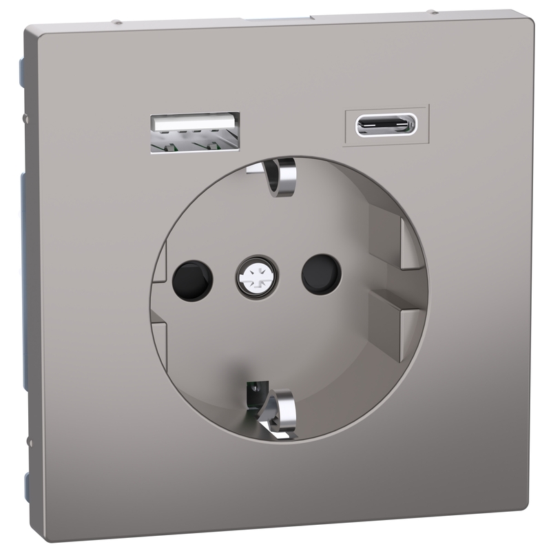Контакт шуко 16A с 2x USB A+C 3A 15W с лицев панел цвят Никел System Design - Schneider Electric Merten System Design MEG2367-6050