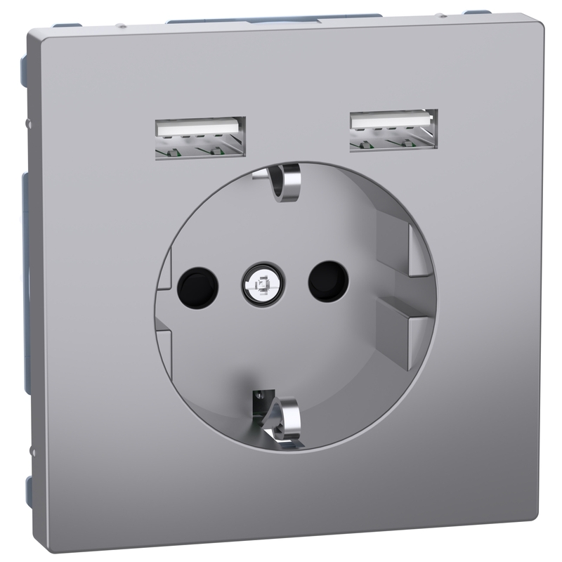 Контакт шуко 16A с 2x USB тип А 2.4A 12W с лицев панел Неръждаема стомана System Design Merten