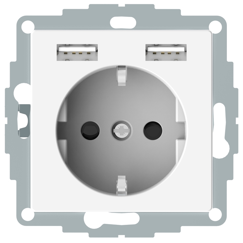 Контакт шуко 16A с 2x USB тип А 2.4A 12W с лицев панел Полярно бяло System M - Schneider Electric Merten System M MTN2366-0319