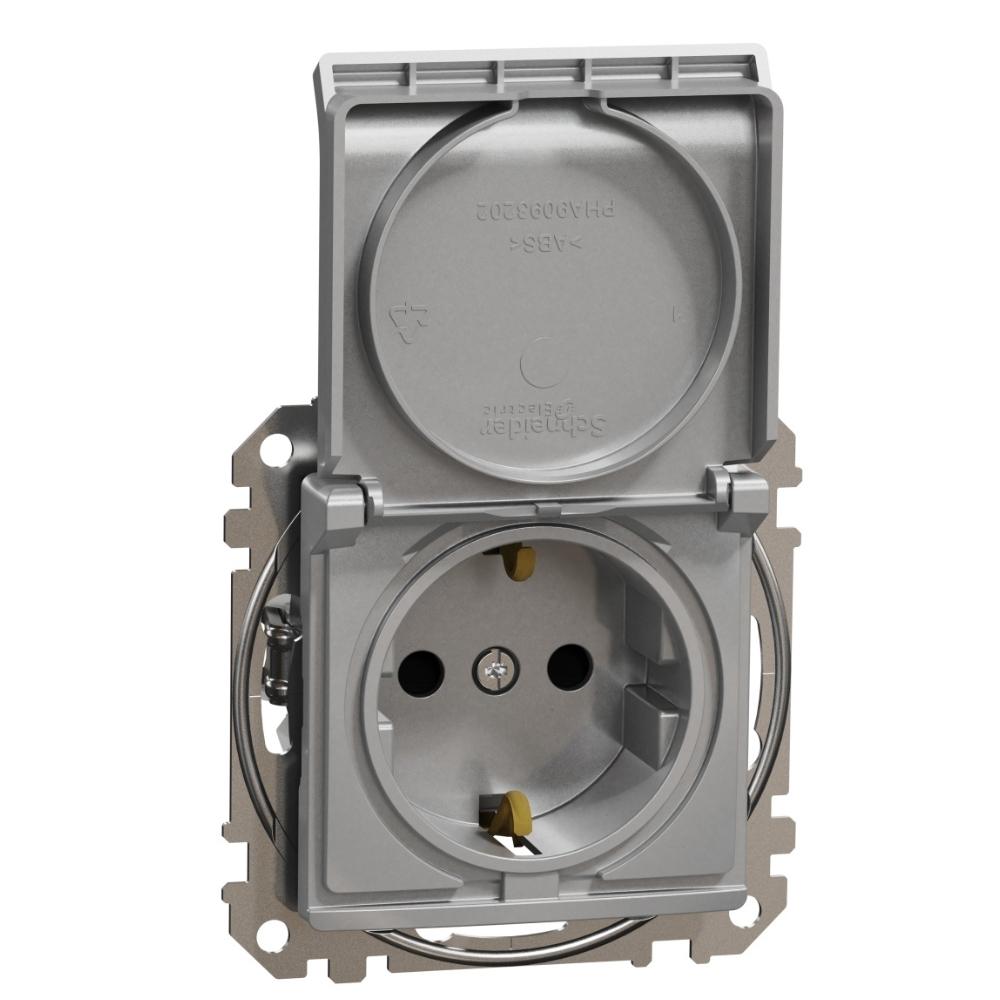 Контакт Шуко 2P+E 16A авт. клеми детска защита капак Алуминий - SCHNEIDER ELECTRIC Sedna Design SDD113024