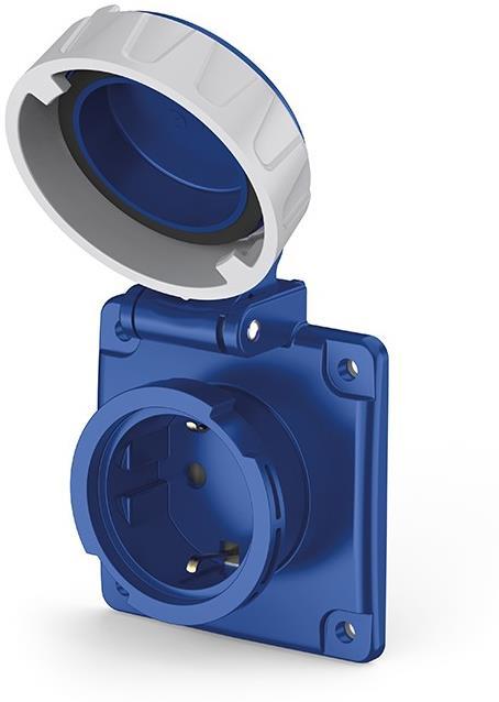 Контакт шуко 2P+Е 16A IP66/IP67/IP69 с детска защита, серия Domo панелен монтаж 75х75мм Scame