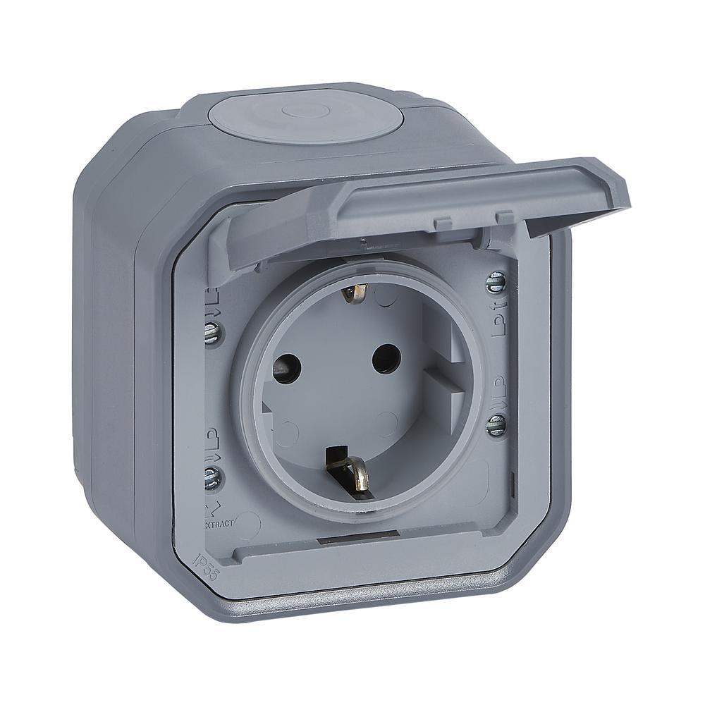 Контакт Шуко 2P+E 16А моноблок с детска защита и винтови клеми ОМ IP55 Сив - Legrand Plexo New 069733L