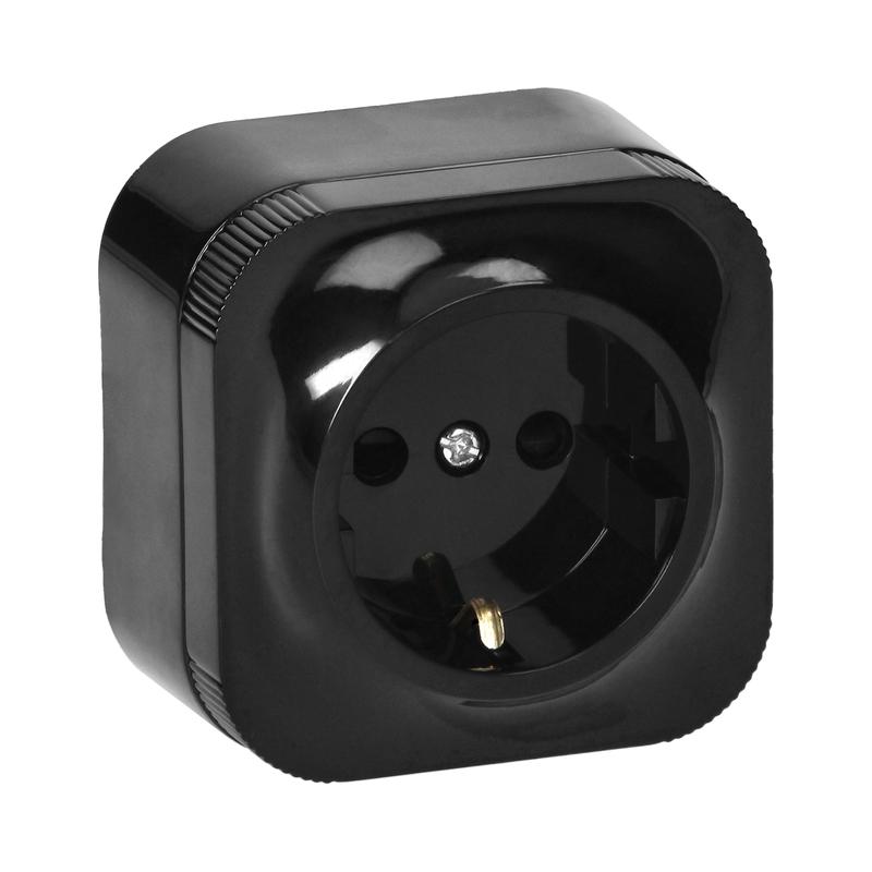 Контакт Шуко 2P+E 16А открит монтаж ToDo Черен
