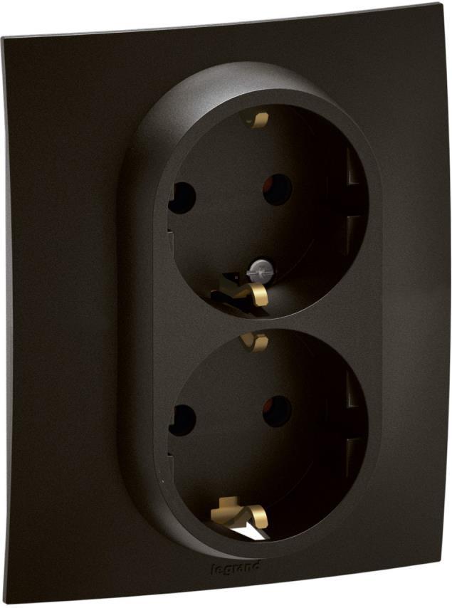 Контакт шуко ДВОЕН 16A моноблок цвят Черен Niloe New Legrand