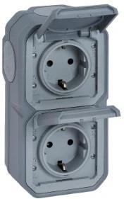 Контакт шуко ДВОЕН 16А вертикален винт. клеми моноблок за открит монтаж цвят Сив IP55 Plexo New Legrand