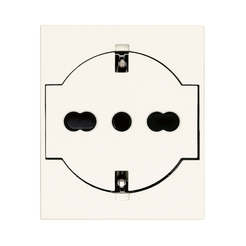 Контакт Шуко/италиански стандарт плосък 2P+E 16A 2 модула SICURY защита White LINEA. С максимална безопасност SICURY защита - патентована технология на Vimar за автоматична механична защита на контактите. Осигурява безопасност чрез синхронен отварящ механизъм, който позволява включване само при правилно поставен щепсел. Предотвратява достъп до тоководещи части и повишава електробезопасността. Удобство, свъзаност, устойчивост - интелигентен избор, който превръща всеки интериор в стилно и модерно пространство.