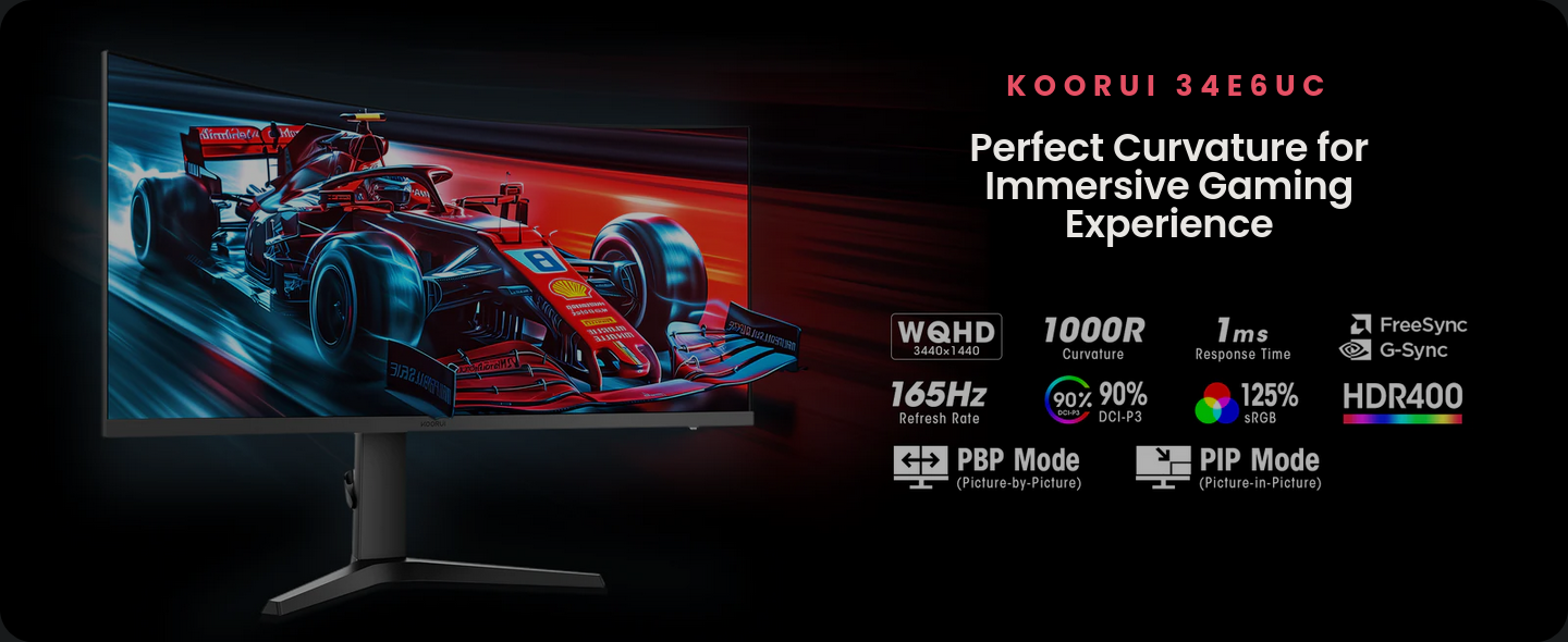 KOORUI 34E6UC 34-inch VA WQHD 165Hz Curved Gaming Monitor