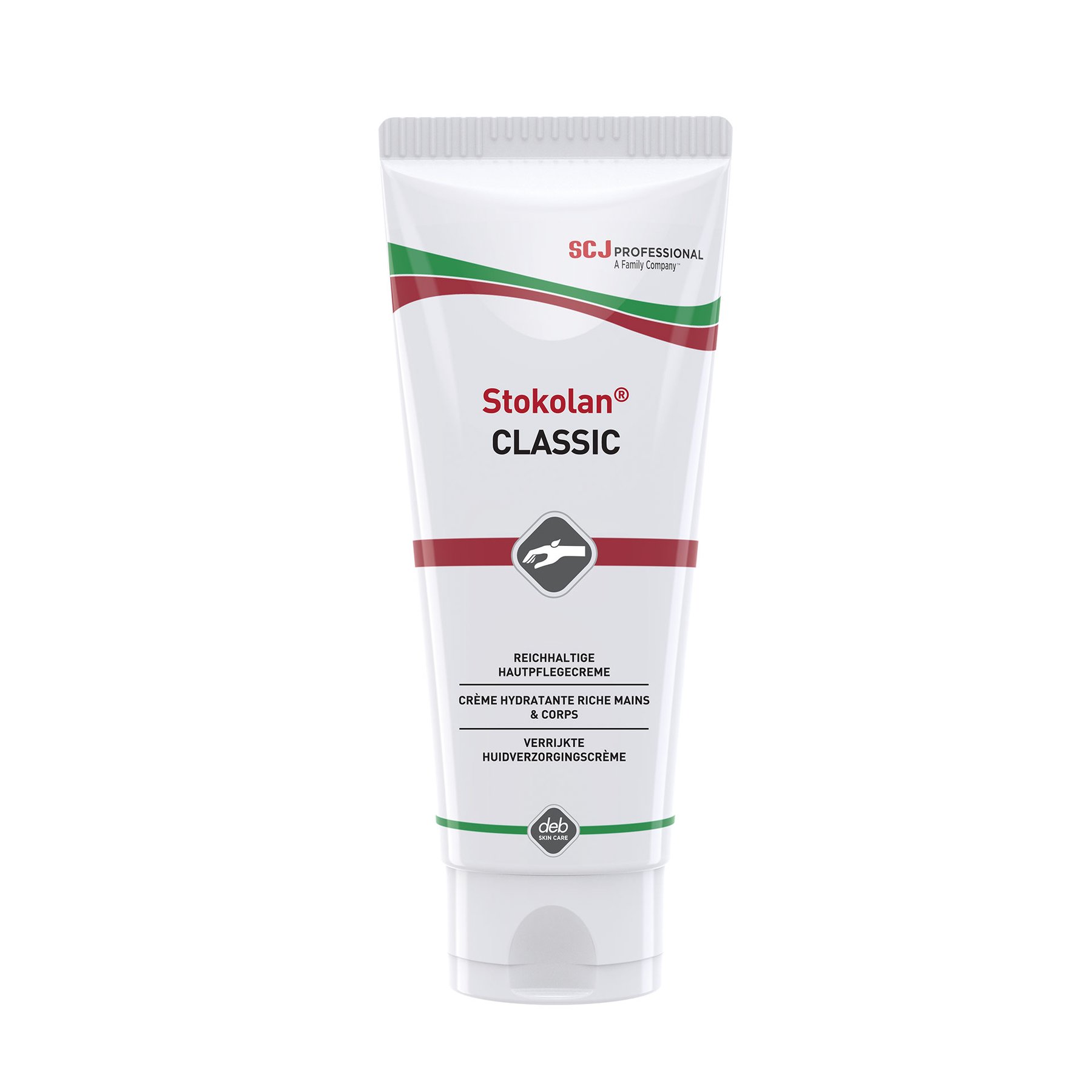 Подхранващ крем за ръце Stokolan Classic, предназначен за промишлени и здравни среди, където служителите са предразположени към суха или много суха кожа.