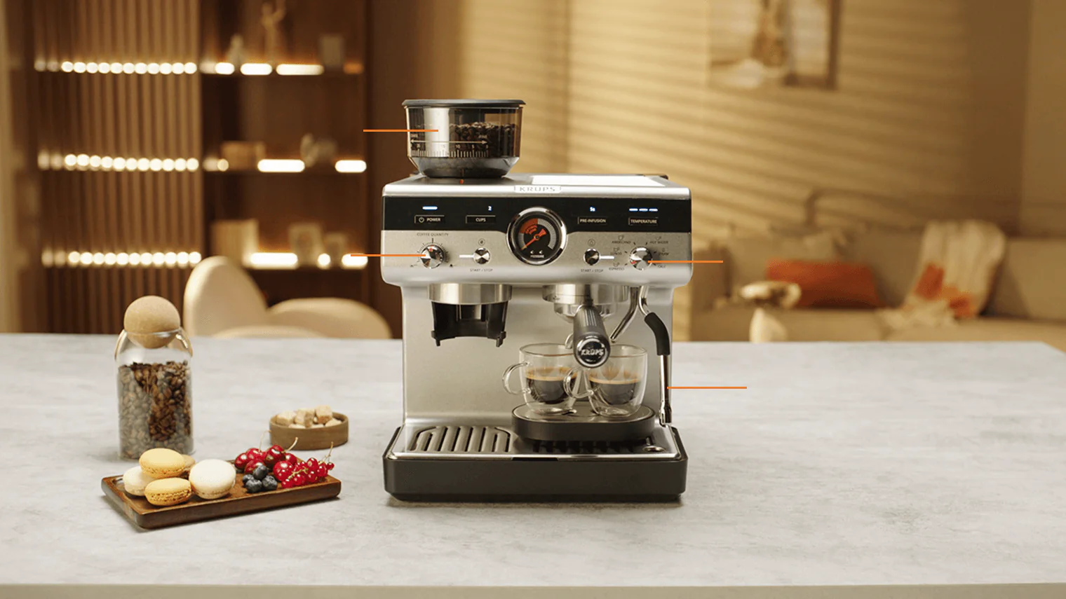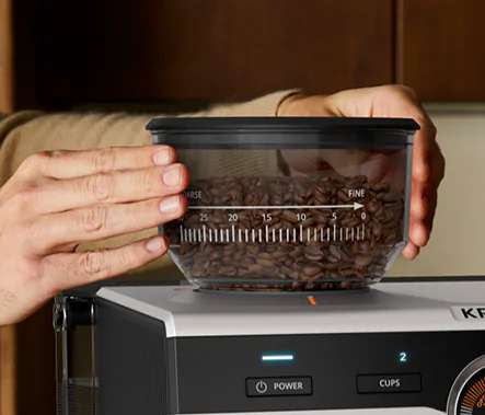 Изберете опцията за смилане на зърната до 30 нива. | Интуитивен интерфейс за удобно приготвяне на любимото ви кафе | Налягане от 15 бара за максимален вкус и аромат |