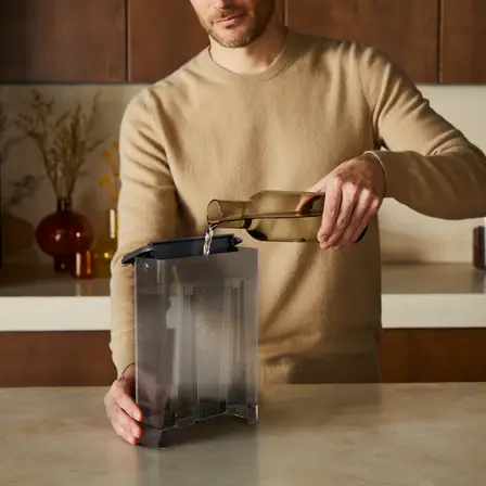 Удобен резервоар за вода Няма нужда от постоянно допълване на резервоара за вода! Подвижният 2-литров резервоар с фиксиран капак и лесно видим прозорец за нивото на водата отпред осигурява оптимална лекота на използване. | ![]() |