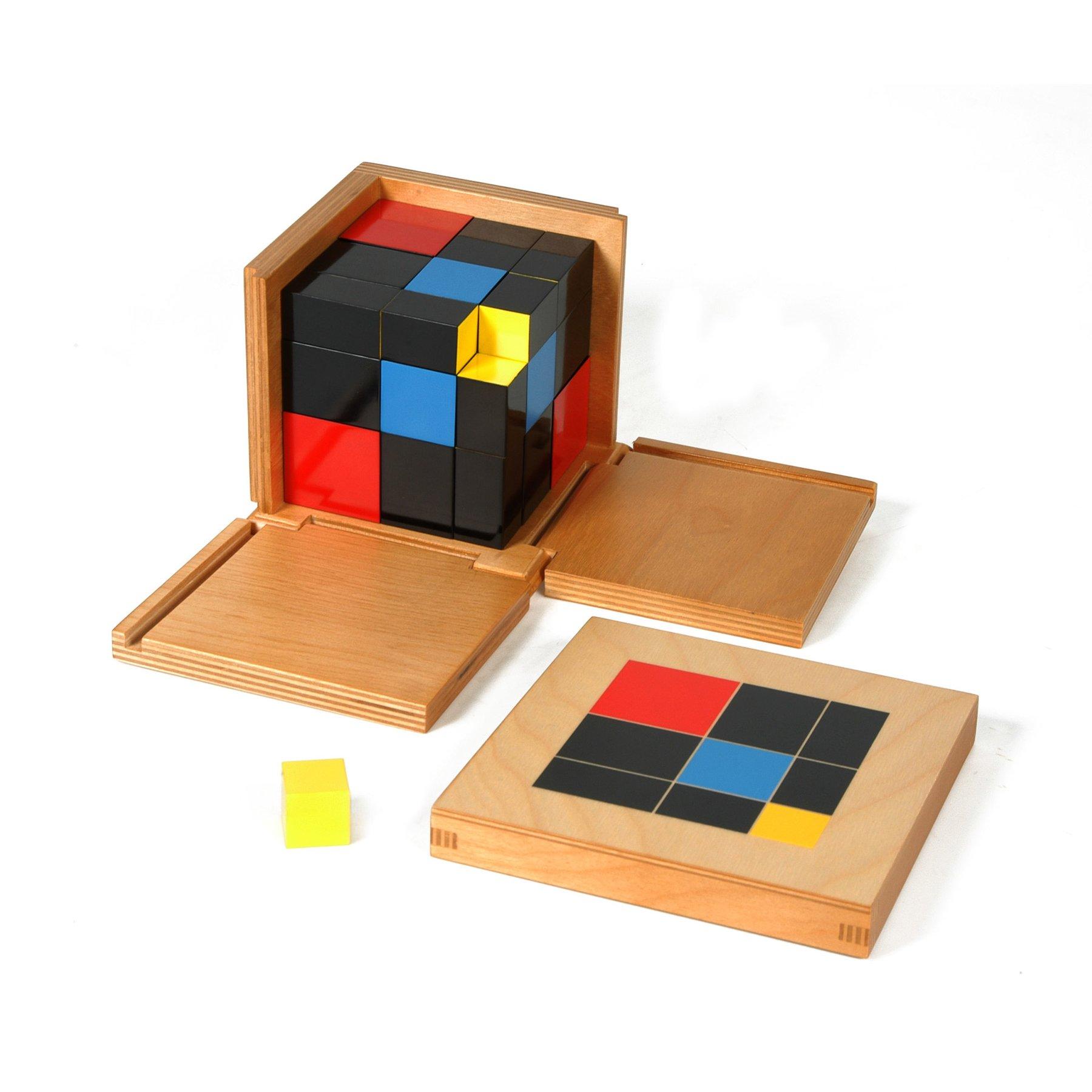 - Три червено-черни паралелепипеда със същата височина като жълтия куб.