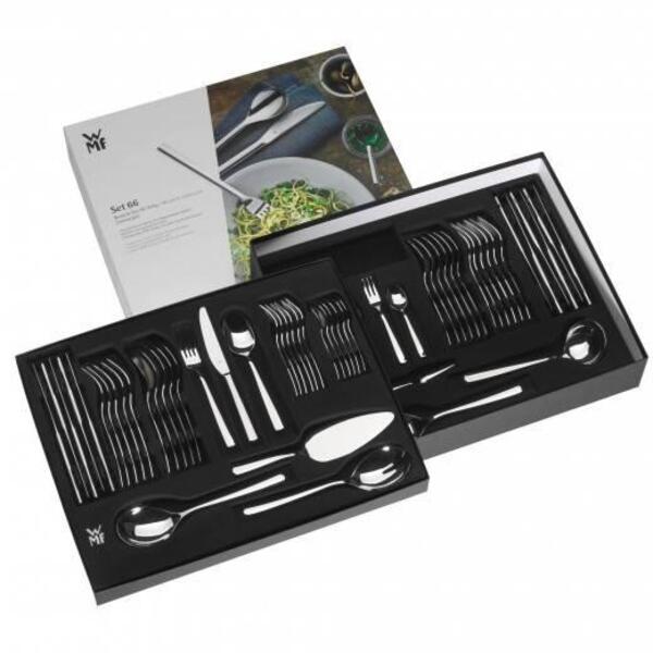 WMF е марка със столетна традиция в производството на висококачествени кухненски принадлежности, които са символ на стил и дълготрайност. Този 66-частен комплект е изработен от висококачествена неръждаема стомана Cromargan® 18/10, която осигурява изключителна устойчивост на корозия и дълголетие на продукта. С него ще имате всичко необходимо за обслужване на до 12 души, което го прави идеален за семейни събирания или празнични поводи.