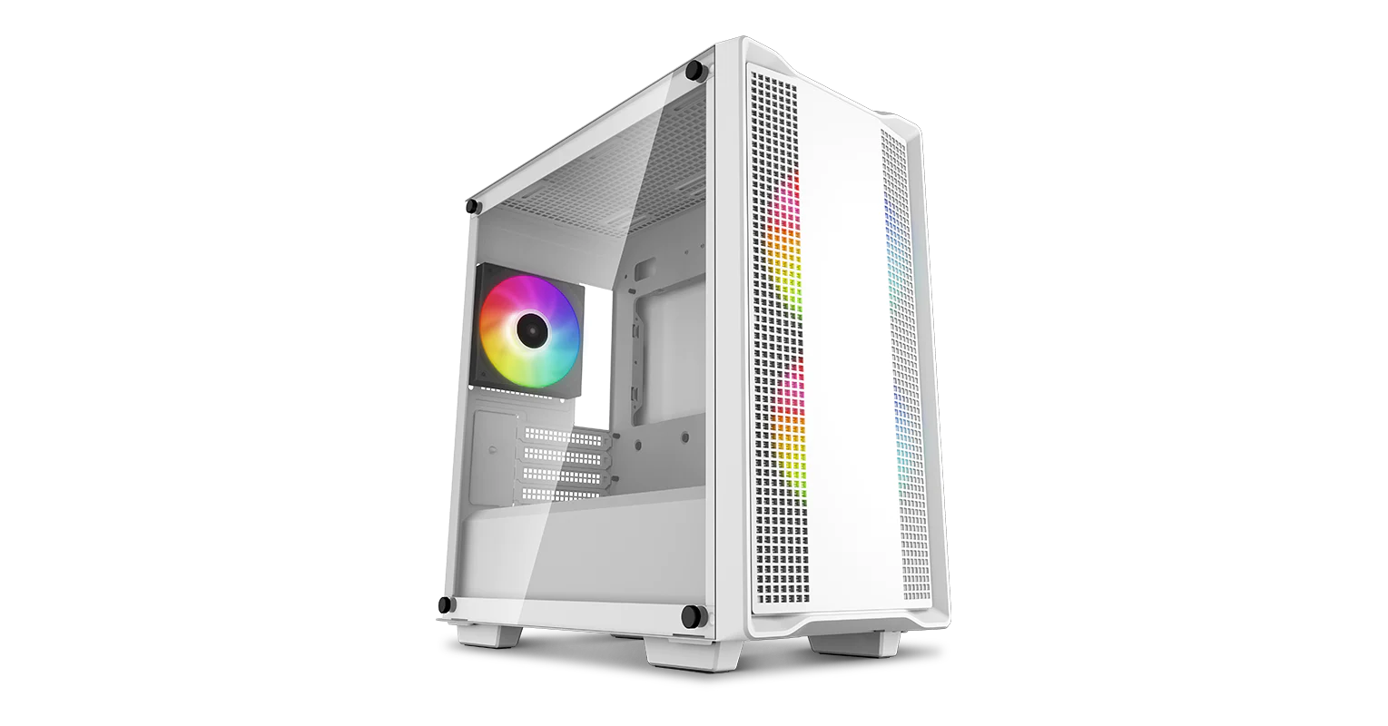 The DeepCool CC360 WH ARGB is an all-white Micro-ATX case that offers outstanding value with spacious component compatibility, a crystal-clear tempered glass window, and a total of three pre-installed ARGB fans that get any build started right.