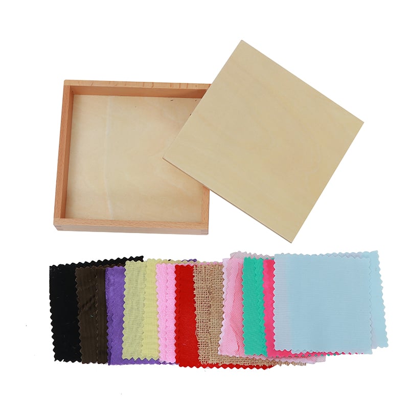 • В комплекта имаме по 2 парчета от един плат, като детето трябва да открие двойките. Някои от материите са с близки цветове за да се стимулира детето да разчита на ръцете си за да разбере разликата. С тези занимания се развиват сензорните възприятия на детето.