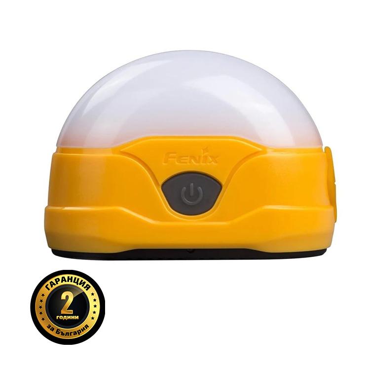 Акумулаторната къмпинг лампа Fenix CL20R излъчва максимална мощност 300 лумена от вградената си батерия с капаците 1600mAh и неутрален бял светодиод. Тази лампа има шест режима на светене, включително 4 нива на бяла светлина, червено и червено мигане. Индикатора за зареждане и ниво на батерията ви помагат да се уверите, че разполагате с енергията, от която се нуждаете. Магнитното дъно и куката за окачване улесняват осветяването във всяка ситуация. Устойчив на пръски от дъжд и прах, лекият CL20R е перфектният спътник по време на къмпинг.