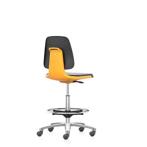 Лабораторен работен стол Bimos Labsit 9125, висок, до 120 kg, черен и оранжев