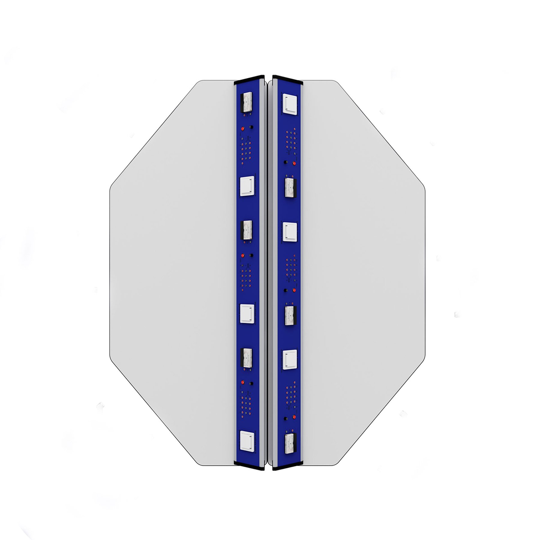 Лабораторна маса по физика RFG Hexa, над VII клас, 1700 х 1400 х 750 mm, HPL плот, синьо-бяла