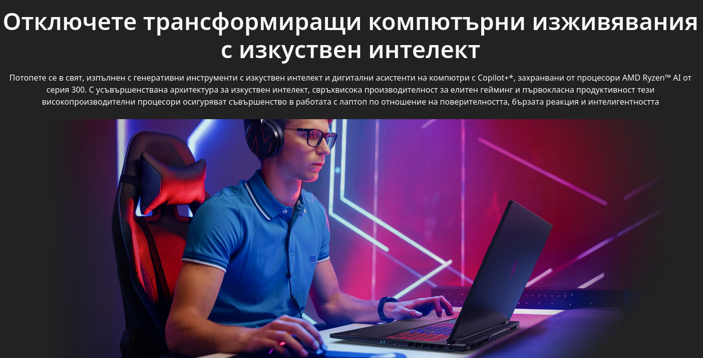 AMD Ryzen™ AI 9 365, 10 cores / 20 threads, Base 2.0 GHz, Boost up to 5.0 GHz, 24MB Cache, AMD Ryzen™ AI NPU (up to 50 TOPS)