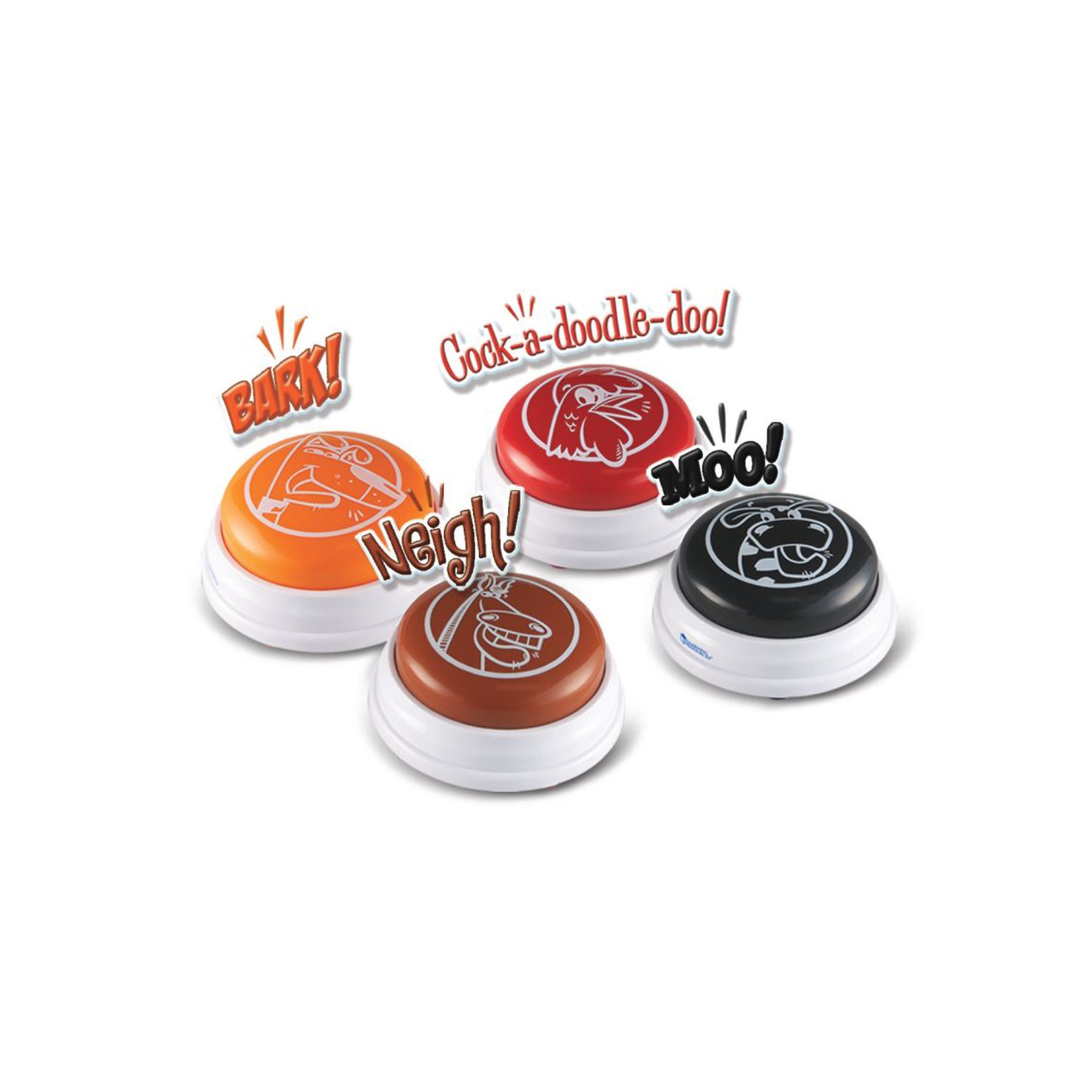 • С четири различни забавни звука на животни: петел, крава, куче и кон. Всеки бутон е с диаметър 9 cm.