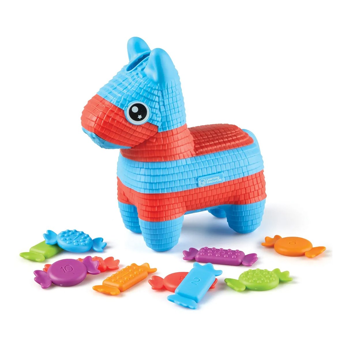 - Пинятата съдържа 10 цветни, номерирани бонбона със забавни текстури, което помага на малчуганите да развиват умения в ранна възраст.