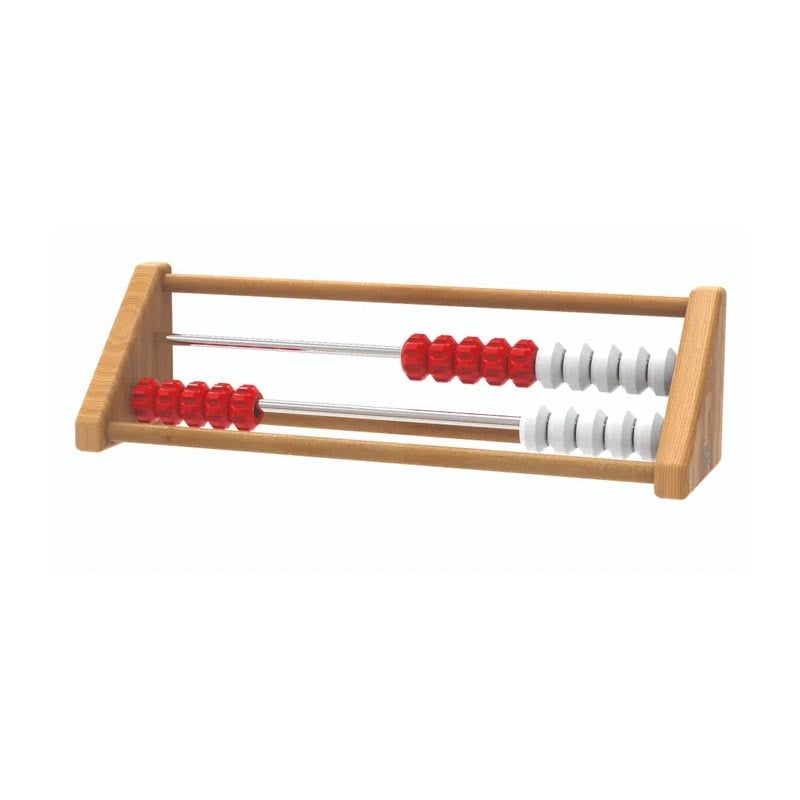 • Сензорното сметало съдържа две редици с текстурирани червени и бели мъниста, които насърчават децата да мислят на групи по пет и десет, подпомагайки преминаването от броене на пръсти към по-абстрактно мислене и смятане.