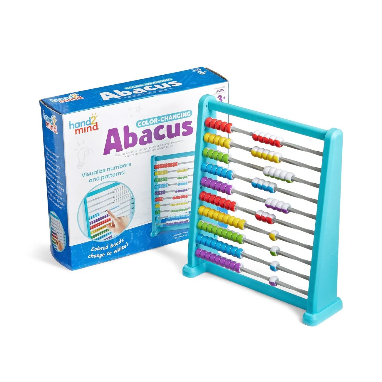 • Многоцветните мъниста стават бели, когато децата ги плъзгат по всеки ред, като това им помага да упражняват броене и моделиране, както и основно събиране и изваждане.