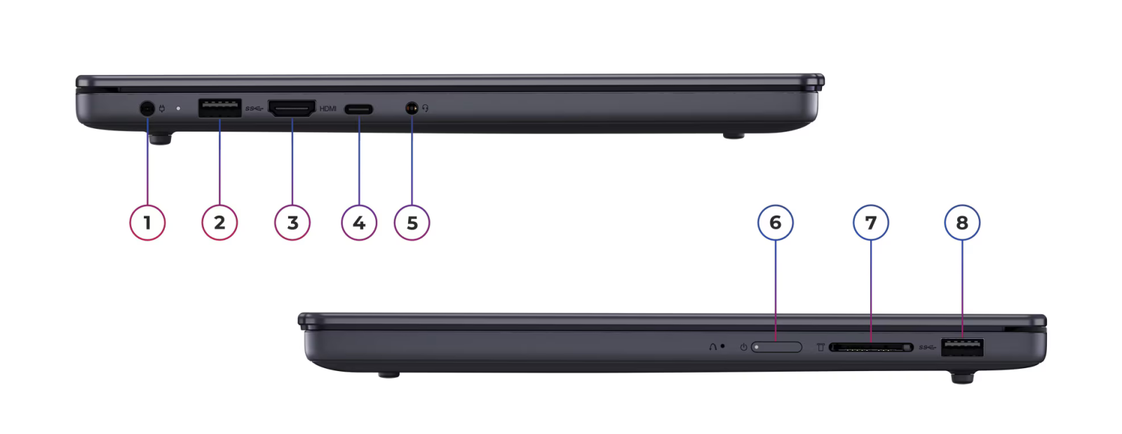 3. HDMI® | 7. SD card reader |