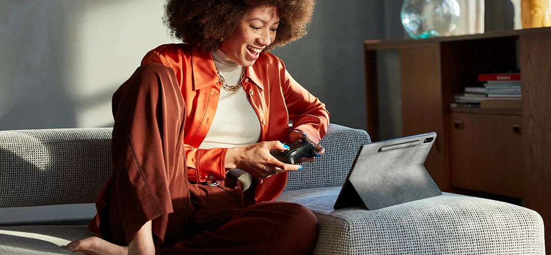 The Lenovo Tab P12 Pro delivers buttery-smooth visuals on the latest AAA gaming titles thanks to its 120 Hz display refresh rate—even when you're playing from your backyard or patio. Accelerated speed meets ultra-fast connectivity with the elite, WiFi 6-certified Qualcomm® Snapdragon™ 870 mobile platform, setting new resolution, speed, and latency standards.
