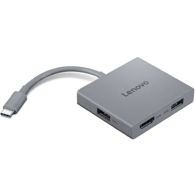A portable hub with fixed Type-C cable, an useful extension adapter that enables customers to easily connect to an external monitor, wired network, and USB device.