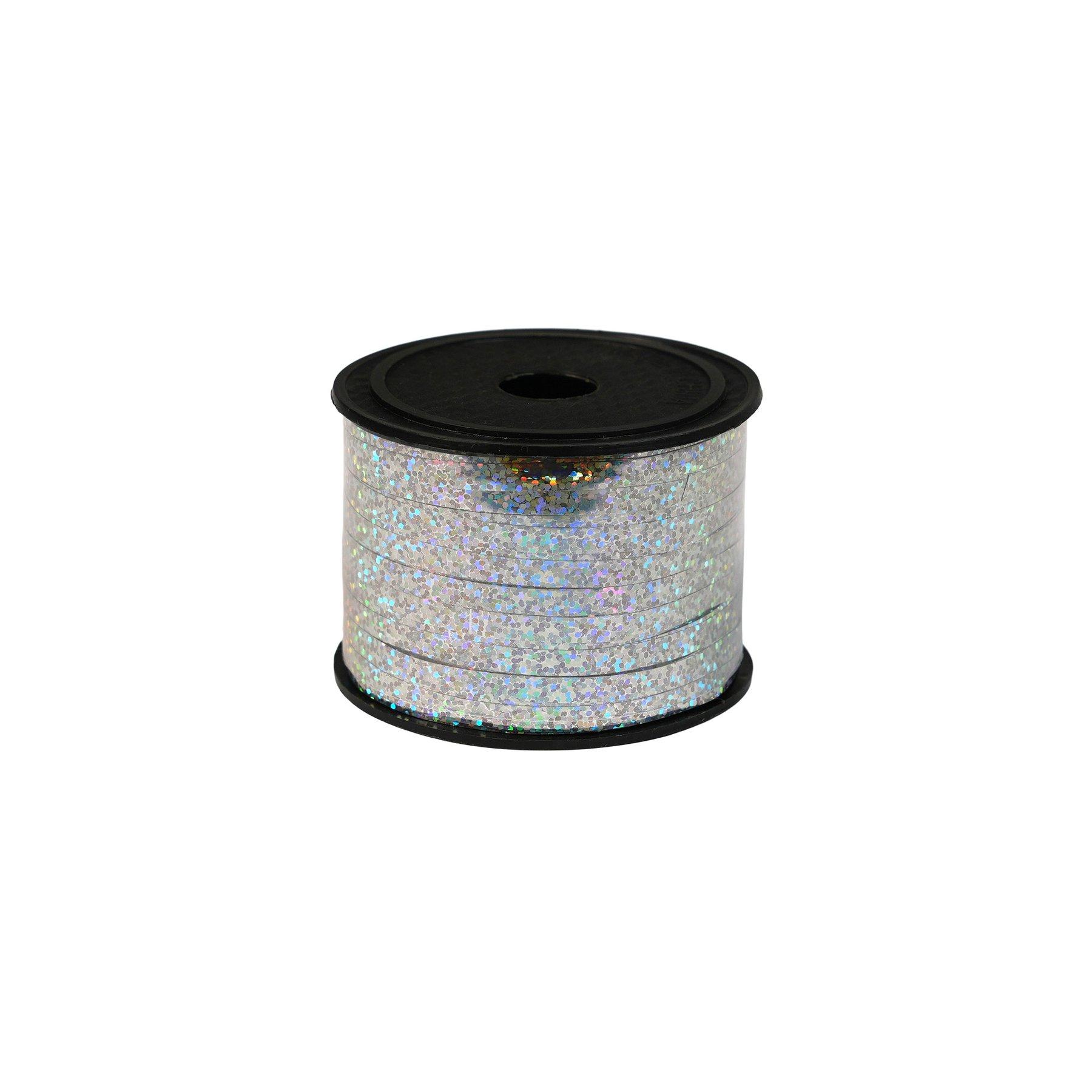 Лента-панделка, металик, с брокат, 0.5 cm, 90 m, сребриста
