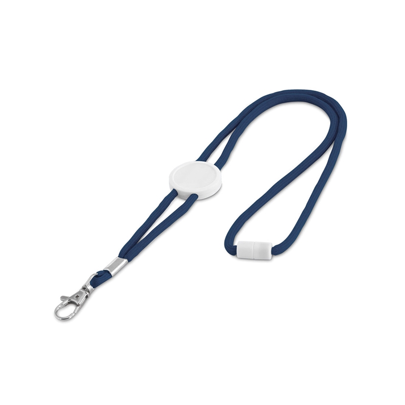 • Регулируема полиестерна връзка за бадж с метален карабинер, подвижна катарама, каишка за мобилен телефон и предпазна закопчалка.
