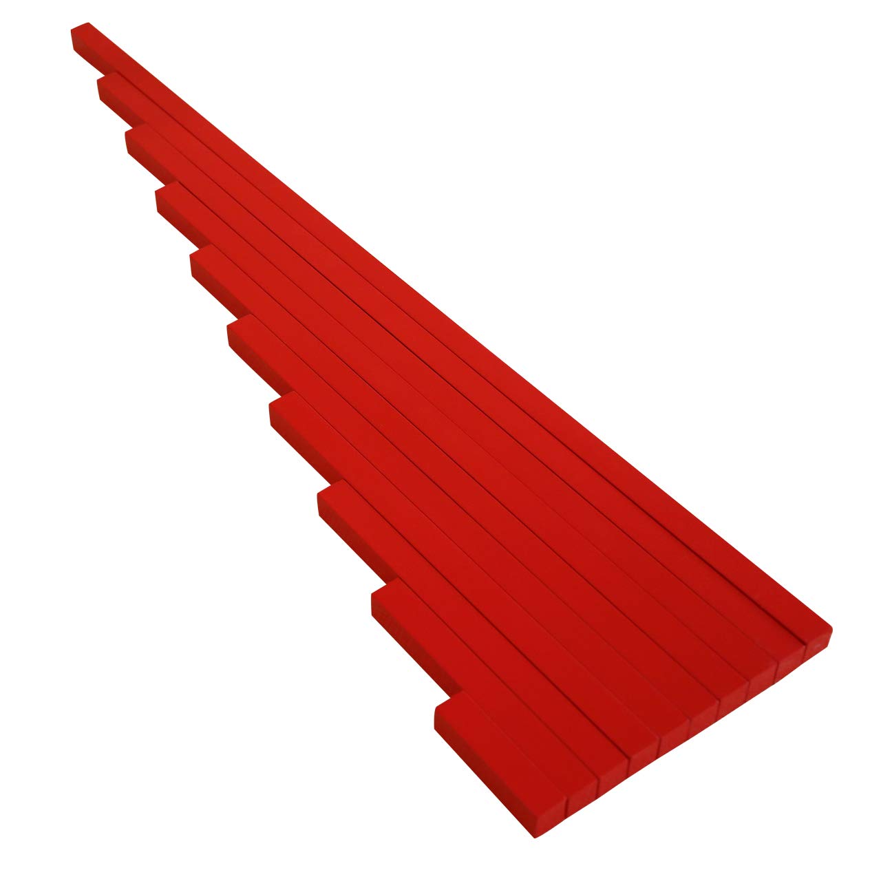 • Монтесори-материал, който се състои от 10 червени летви с дължина от 10 до 100 cm.