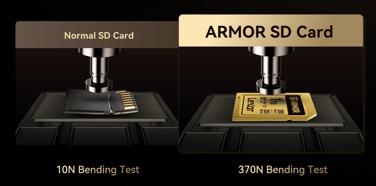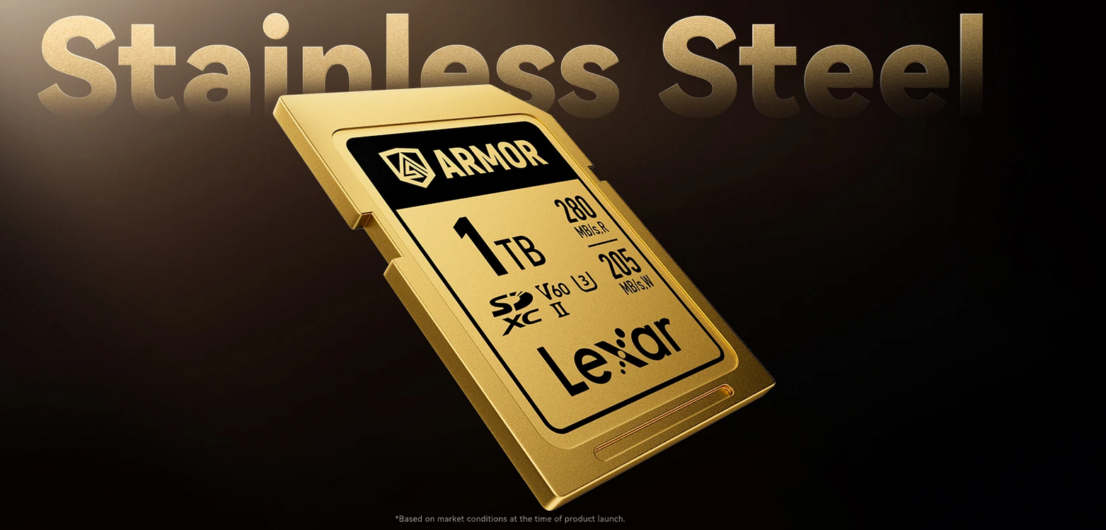 The Lexar Armor Gold SDXC UHD-II Card if the world's first memory card that uses stainless steel for steel-clad protection of your data*.