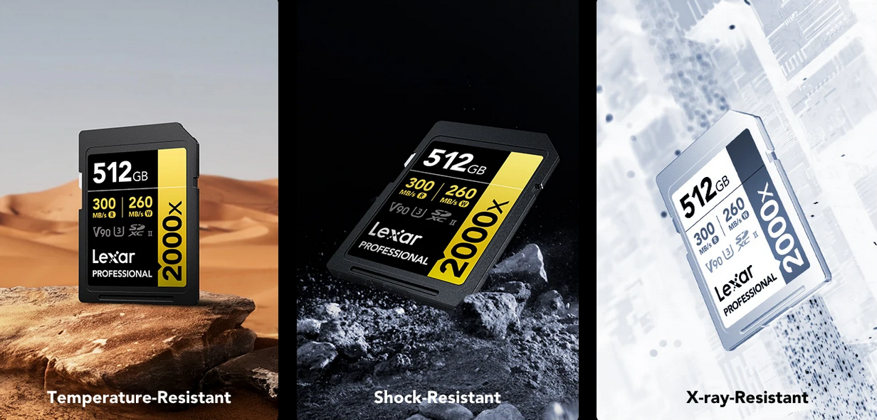 2000x SD card offer super-fast speeds of up to 300MB/s read, dramatically accelerating your workflow from start to finish.