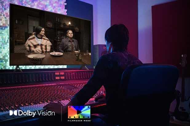 Dolby Vision и Ambient FILMMAKER MODE Насладете се на филмите както ги е замислил режисьорът с режимите FILMMAKER MODE и Dolby Vision с компенсация на околната светлина, адаптиращи се към светлината на помещението и запазва визуализацията възможно най-близка до първоначалния ѝ вид. | ![]() |