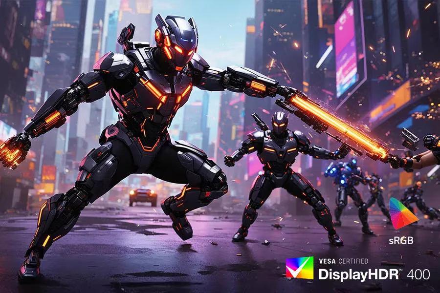 |  | QHD clarity, bold colors, and DisplayHDR 400 brilliance Bold QHD on a 27” IPS display with up to 99% sRGB color coverage. Experience deeper blacks, vibrant hues, and enhanced contrast with VESA DisplayHDR™ 400, delivering breathtaking detail and crisp visuals for captivating gaming and entertainment. |