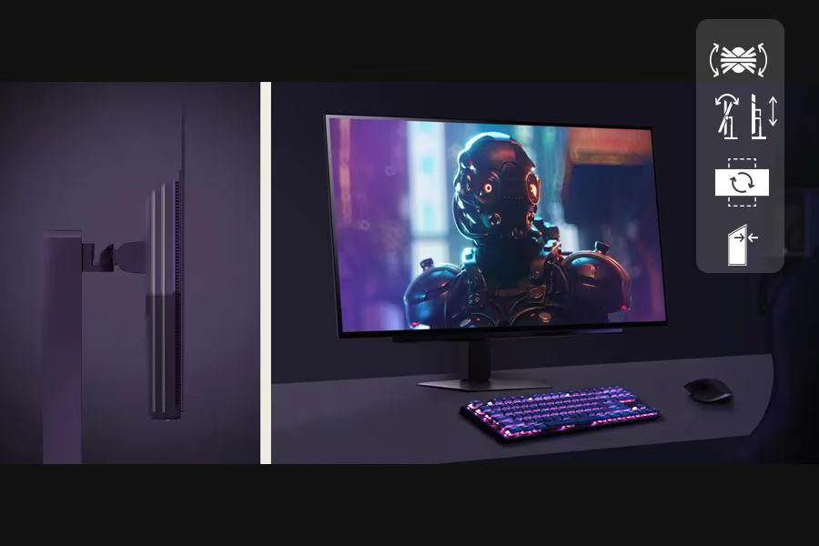 Seamless Display, and Adjustable to Gamer Specs Dive into gameplay on the virtually borderless 27” OLED screen. The slim-profile display has adjustable height, tilt, swivel and pivot controls that let you customize your view, while 3-pole headphone jack keeps audio loud and clear. | ![]() |