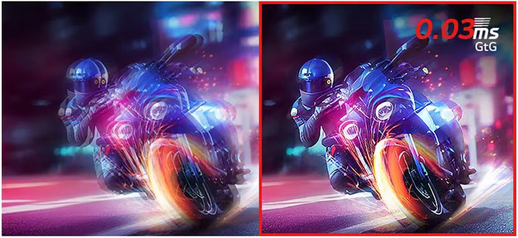 ![]() | 0.03ms (GtG): Astounding Gaming Speed Play with a near-instantaneous 0.03ms response time, which minimizes ghosting for gaming visuals that are sharp, clear and buttery smooth. |