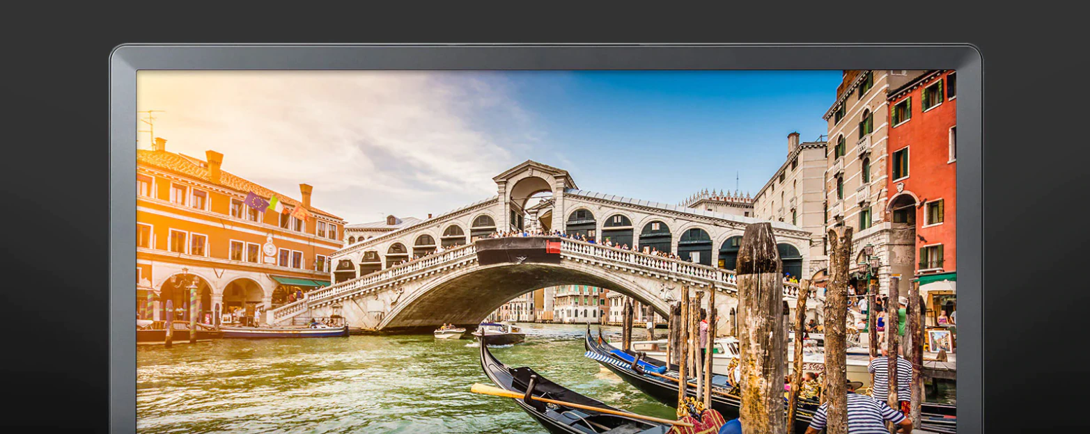 Телевизионният монитор на LG поддържа широки вертикални и хоризонтални ъгли на видимост с превъзходна точност на цветовете. Седнали или изправени, можете да се насладите на същата отлична проекция на изображението.