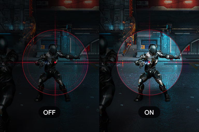![]() | Crosshair Прицелната точка се фиксира в центъра, за да подобри точността при стрелба. |