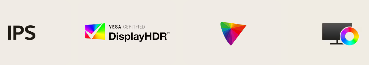 IPS Display LG IPS monitor displays outstanding color accuracy with a wide viewing angle. | VESA Display HDR400 (high dynamic range) supports specific levels of color and brightness. | sRGB 99% (Typ.) With 99% coverage of the DCI-P3 spectrum, it is a great solution for accurate color display. | Color calibrated Ensures precise and consistent color reproduction. |