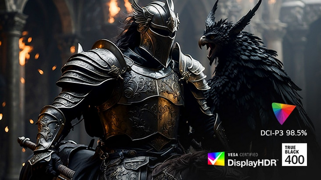 По-дълбоко черно, реалистичен цвят Насладете се на несравнима дълбочина и жив реализъм с VESA DisplayHDR true black 400, което осигурява детайлно изразяване на черното дори в най-тъмните сцени. С контрастно съотношение с 1,5M, DCI-P3 98.5% (станд.) цветова гама се гарантира, че цветовете се показват с реалистични детайли, точно както са замислени първоначално. | ![]() |