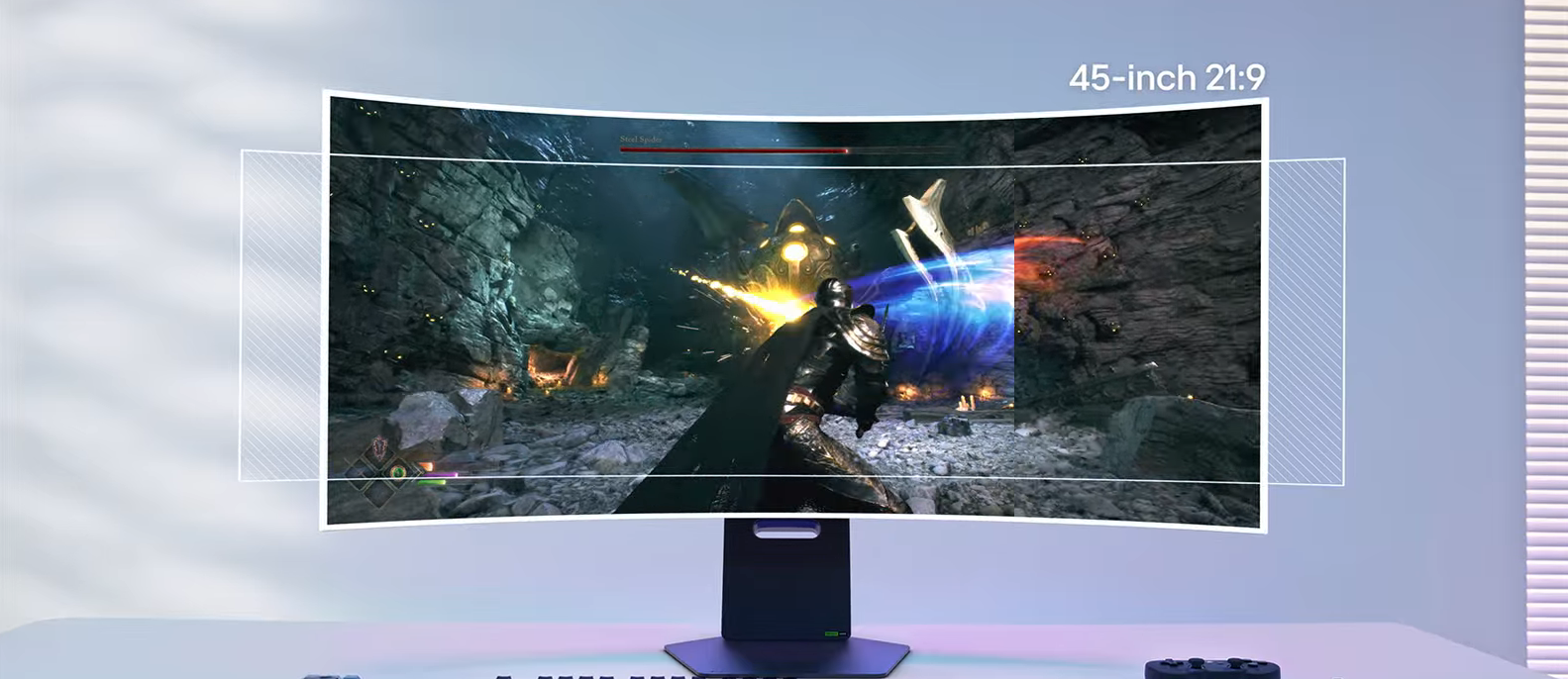 Първият в света 45-инчов OLED дисплей с резолюция 5K2K (5120x2160) осигурява 34% по-широка видимост в сравнение със стандартните 16:9 дисплеи и 33% увеличение на броя на пикселите в сравнение с UHD (3840x2160). Този 5K2K OLED представя смело по-тъмни сенки, по-ярки светлини и наситени цветове по време на игра във всякакви среди.