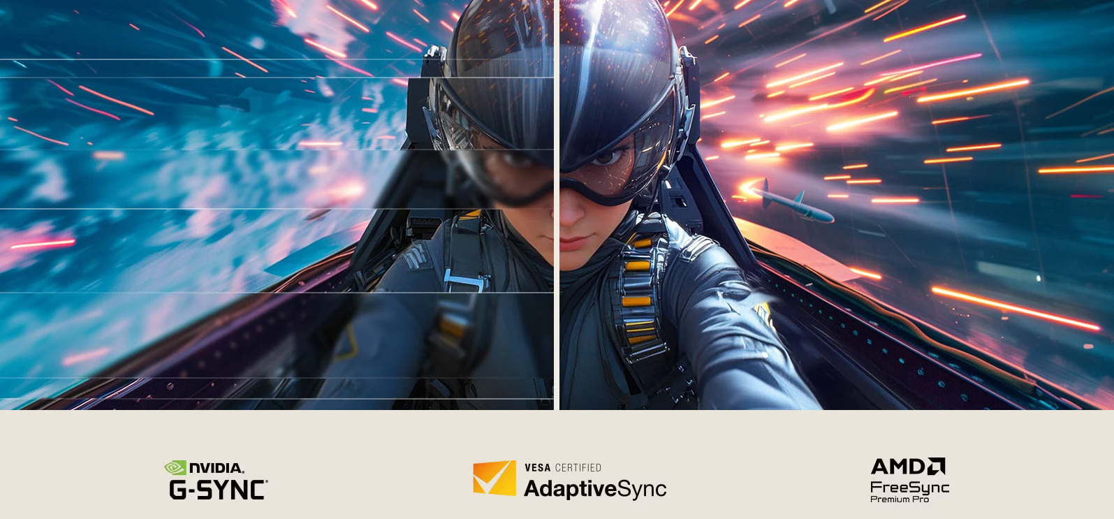 С помощта на технологията AMD FreeSync Premium Pro, NVIDIA-validated G-SYNC compatibility и VESA AdaptiveSync certification този монитор осигурява свръхплавни визуализации без накъсване и ниска латентност, осигурявайки несравнима прецизност и плавност на игрите.