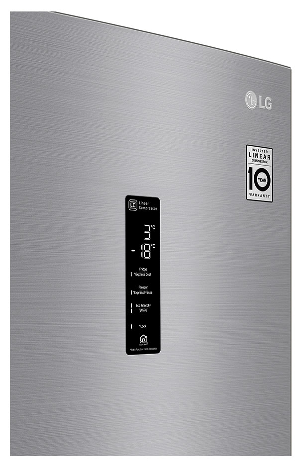DoorCooling+ До 32%* по-бързо и равномерно охлаждане навсякъде Вентилационните отвори, разположени в предната част на хладилника, помагат за поддържане на температурата, за да запазите хранителните продукти пресни. Оптимизиране на влажността FRESHBalancer сигурно задържа влагата, докато движещите се контролери поддържат оптималната влажност на плодовете и зеленчуците в зависимост от режима, който сте задали. Изберете оптимална температура за храната ви FRESHConverter поддържа оптимално състоянието съответно на месото, рибата и зеленчуците. Инверторен линеен компресор Инверторният линеен компресор на LG произвежда по-малко шум от конвенционалния компресор благодарение на модерната технология на LG. Той също така прави по-голяма икономия на енергия и осигурява по-висока надеждност и по-голяма издръжливост. Върхово удобство за кухнята ви Стойката за вино и сгъващата се полица с 2 степени правят лесно комбинирането на храната по вид за удобна организация в кухнята. Сгъваща се полица с 2 степени Лесно съхранение на големи и високи предмети Сгъващата се полица с две степени ви позволява да поставяте храна с всякакви размери и създава място за високи и обемисти предмети. Стойка за вино Проектирана да съхранява 5 бутилки вино Стойката за вино е един от задължителните елементи за потребителите. Висококачествената стойка за вино е предназначена за съхранение на до 5 бутилки. Характеристики: Брой компресори: 1 Linear Compressor Общ капацитет: 336 л Капацитет хладилна част: 229 л Капацитет фризер: 107 л Енергиен клас: A++ No Frost: Total No Frost Диспенсер за вода Дисплей: External LED Индикация за отворена врата Система за охлаждане: No Frost Годишна енергийна консумация: 275 kWh Климатичен клас: SN-T Охладителен агент: R600a Захранващо напрежение: 220 V 240 V Автономия без ток: 16 ч Дозатор за вода Функции: Заключване за деца LED осветление Door Cooling+ Експресно замразяване Цифрови сензори RT за контрол на температурата Технологии: Wi-Fi Линеен инверторен компресор, Smart диагностика ХЛАДИЛНИК Нетен обем хладилник: 186 л Брой рафтове хладилник: 2 Брой рафтове на врата: 3 Система за размразяване на хладилника Автоматична Материал рафтове: Закалено стъкло ФРИЗЕР Нетен обем на фризера: 107 л Брой отделения: 3 Капацитет на замразяване / 24ч: 14 кг Ниво на шума: 36 dB Размери (Ш, Д, В): 59.5 x 68.2 x 186.0 см Тегло: 78 кг Цвят: Сив Platinum Silver
