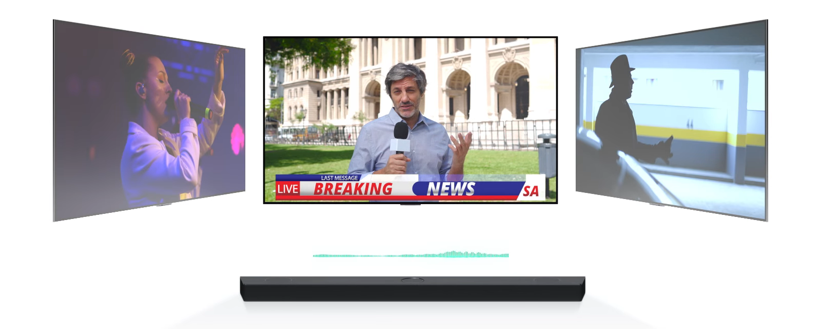 LG саундбар превръща основния 2-канален звук в многоканален, за дълбок звук, който резонира във вашето помещение.