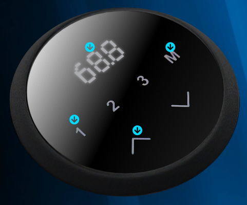 Effortlessly switch between sitting and standing with the touch pad, conveniently located on the left of the tempered glass top.