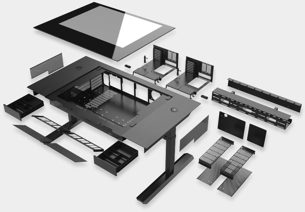 The DK07 is more than just a PC case; it’s a height-adjustable desk that combines functionality with style. With thoughtful details and features, it’s the ultimate all-in-one desk-station.